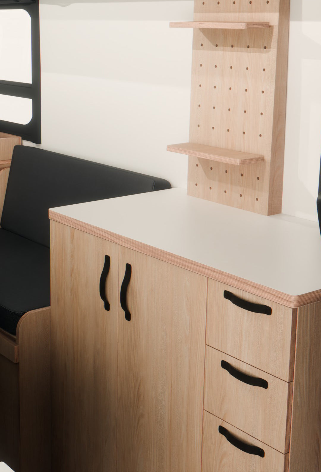 Pour les amateurs de vanlife à la recherche de liberté et d'un vaste espace pour cuisiner, la van Sherbee Escapade 3 pour trois passagers vous offre l’essentiel pour voyager en toute autonomie, tout en demeurant plus abordable.