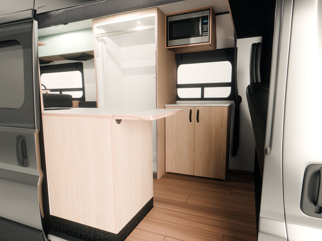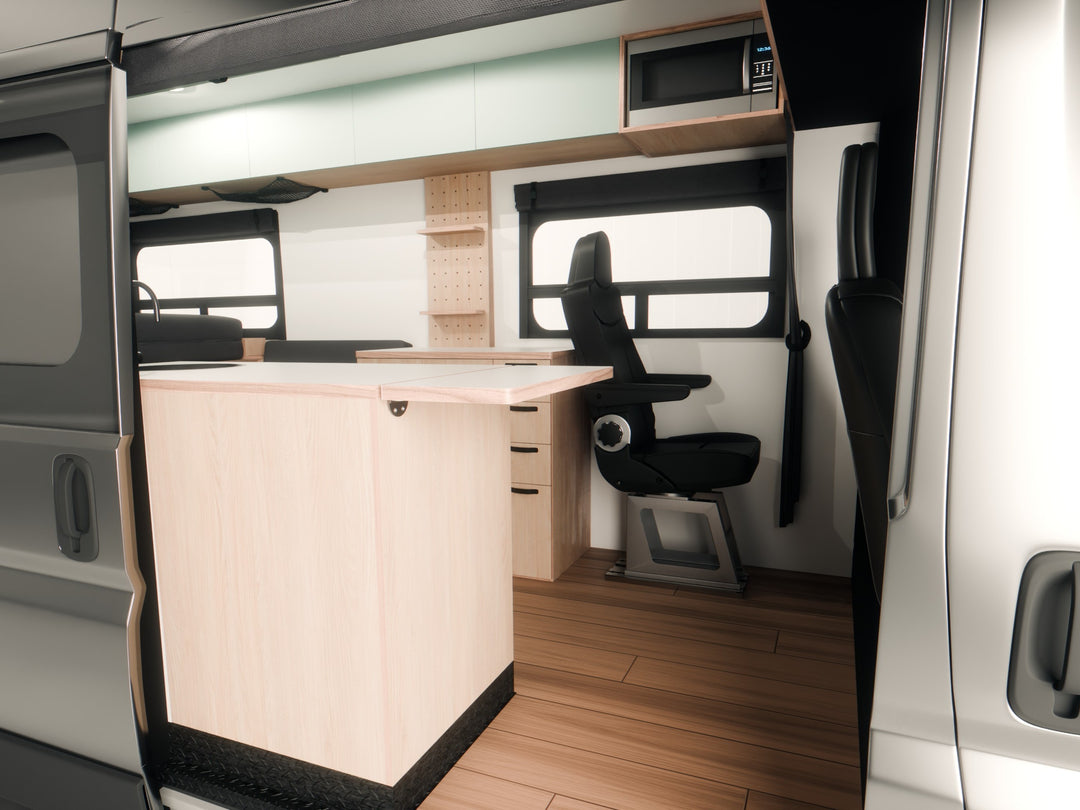Le modèle original pour deux passagers qui a conquis le cœur des vanlifers avec son aménagement intelligent : douche et toilette du côté passager, libérant ainsi un espace cuisine encore plus vaste.